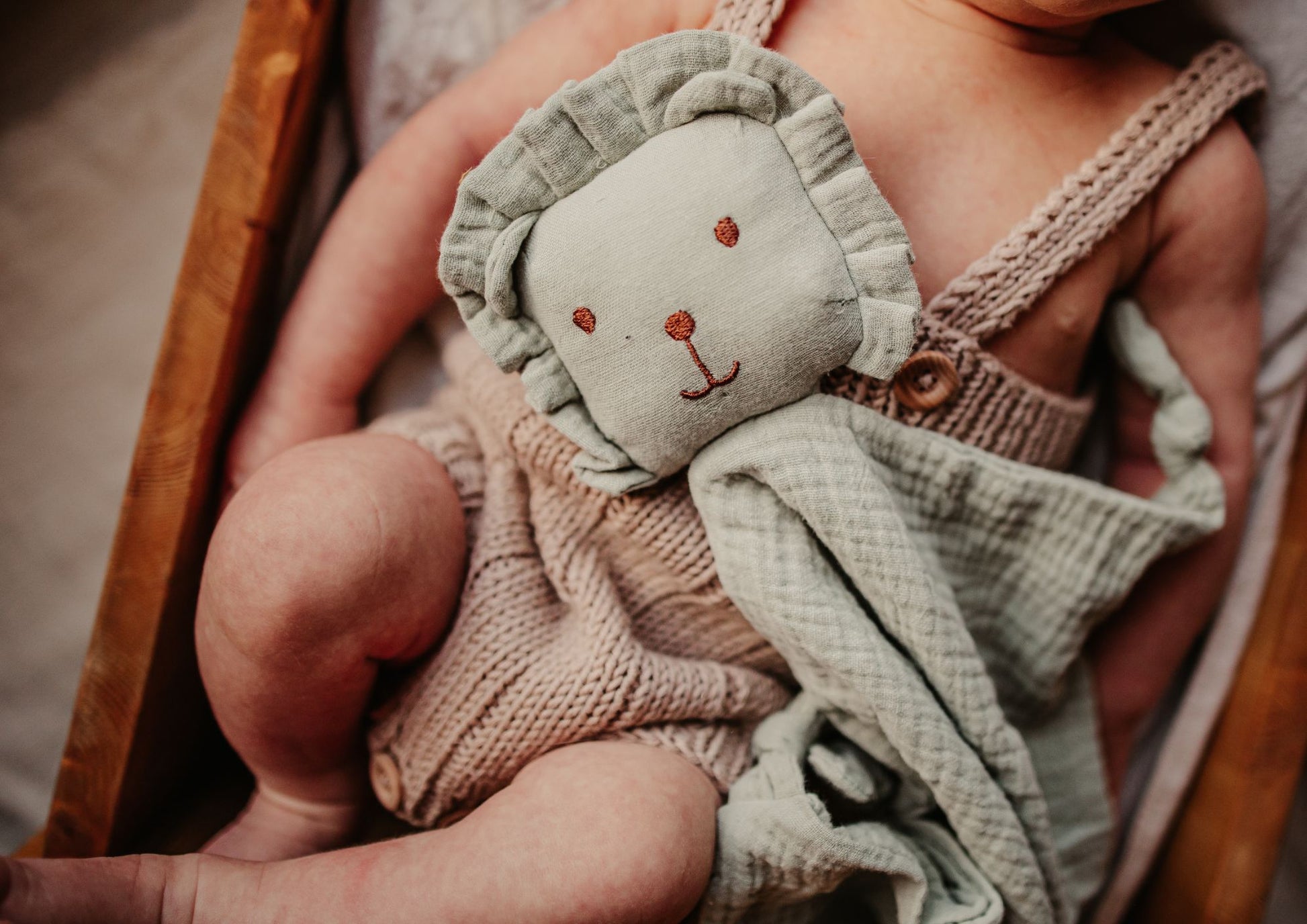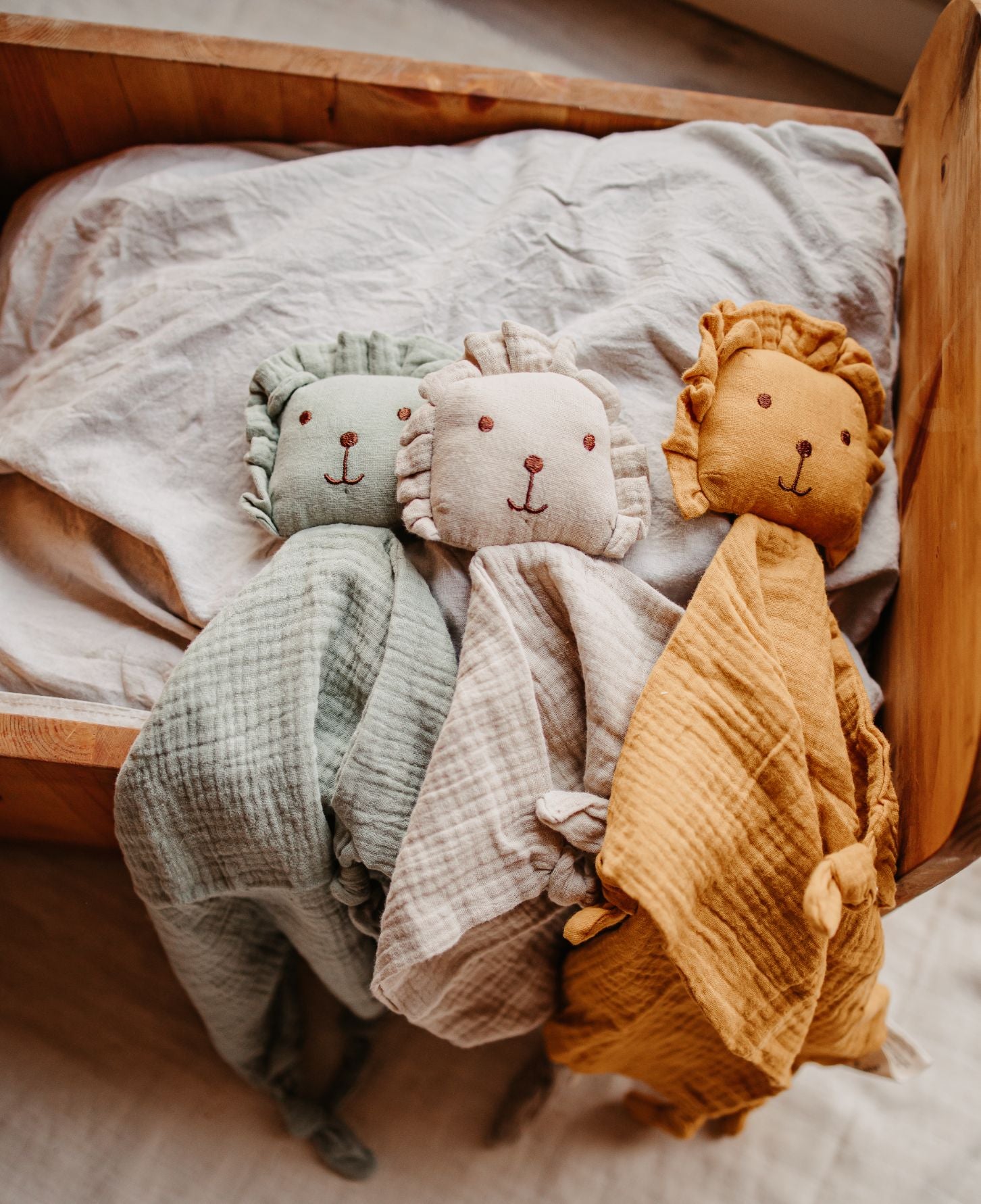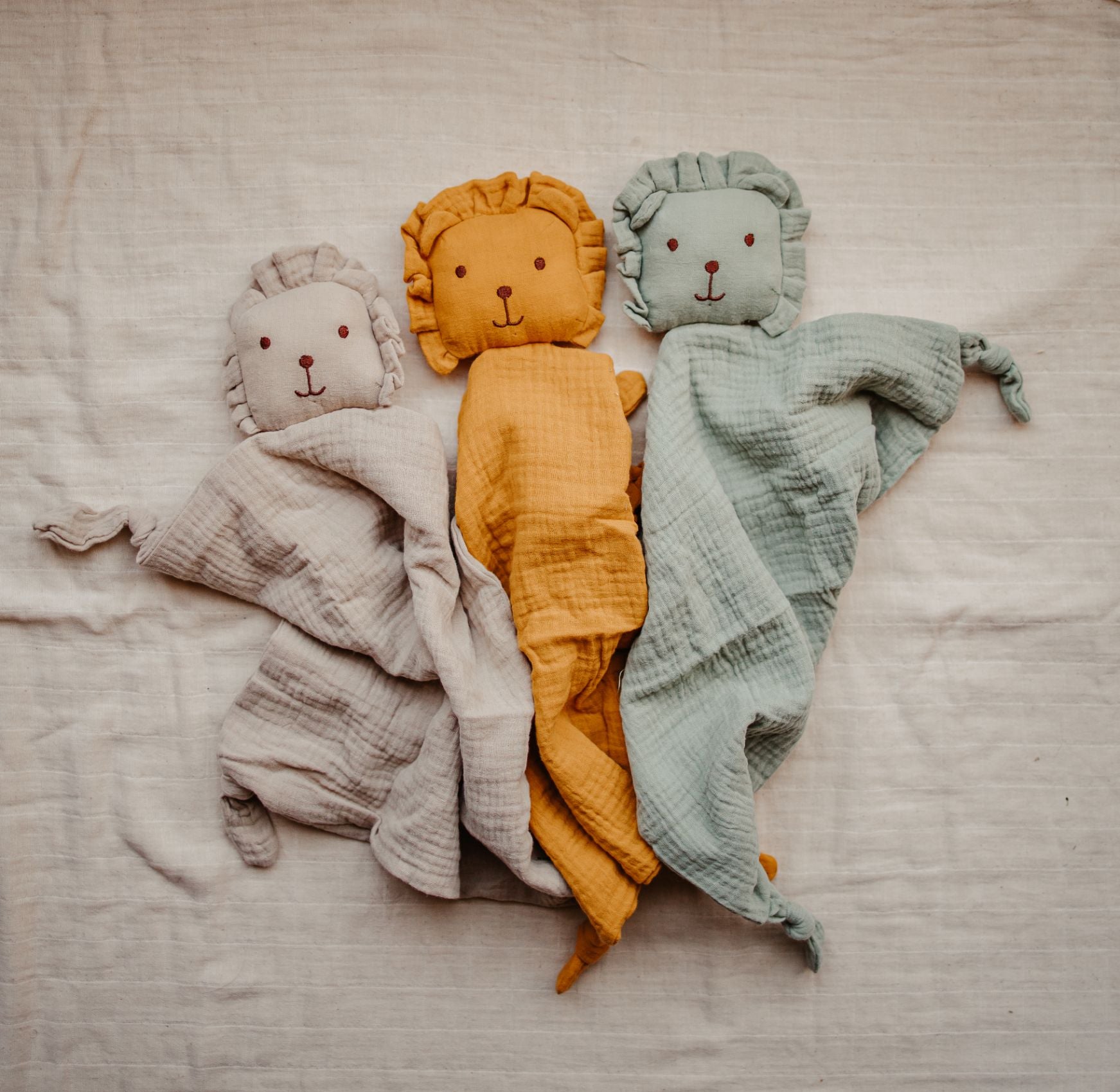 Søt koseklut i myk bomull. En trygg og god løvevenn å ha med i vogna og i senga.